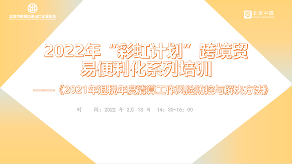 为帮助企业更快更好的完成退税年度清算工作并且有效避免在工作中可能出现的风险,北京市朝阳区进出口企业协会联合北京中算税务服务集团于2022年2月18日(星期五)共同举办了本次“退税年度清算工作风险防控与解决方法”云培训活动。