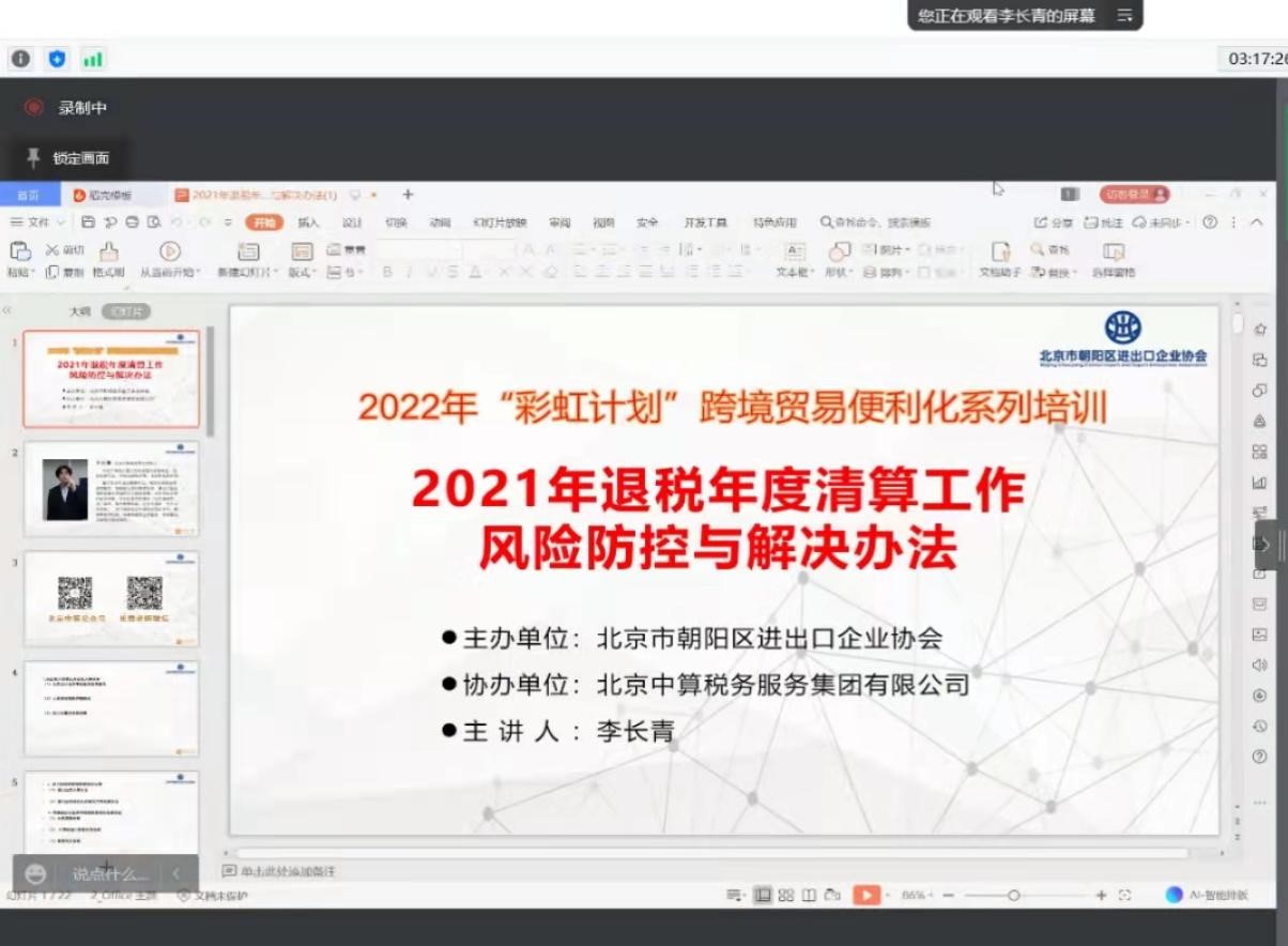 2022年“彩虹计划”跨境贸易便利化系列培训——《2021年退税年度清算工作风险防控与解决方法》讲座圆满召开